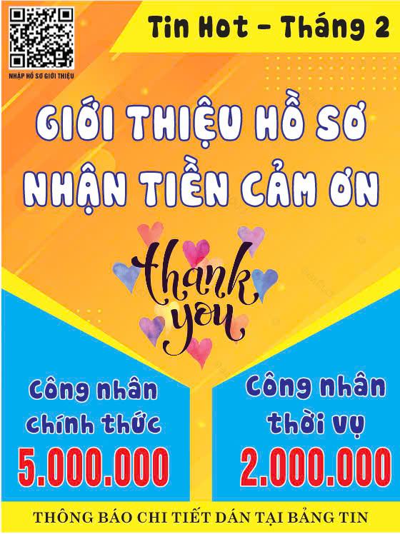 1. Nhận 5 triệu đồng khi giới thiệu công nhân đi làm chính thức, nhận 2 triệu đồng với công nhân thời vụ