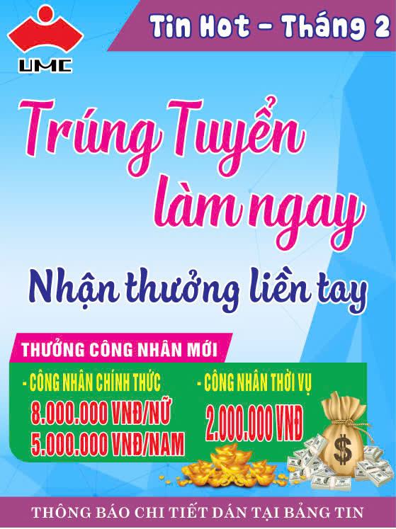 Thưởng 8 triệu đồng cho công nhân mới đi làm tháng 2/2025